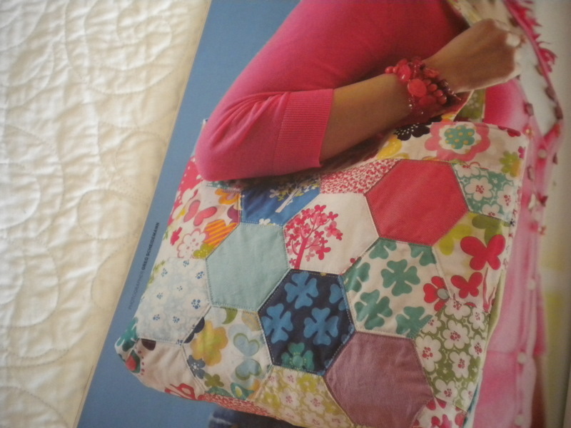 up in the right hand corner is a picture of a charm-square hexagon bag…that I designed!!!