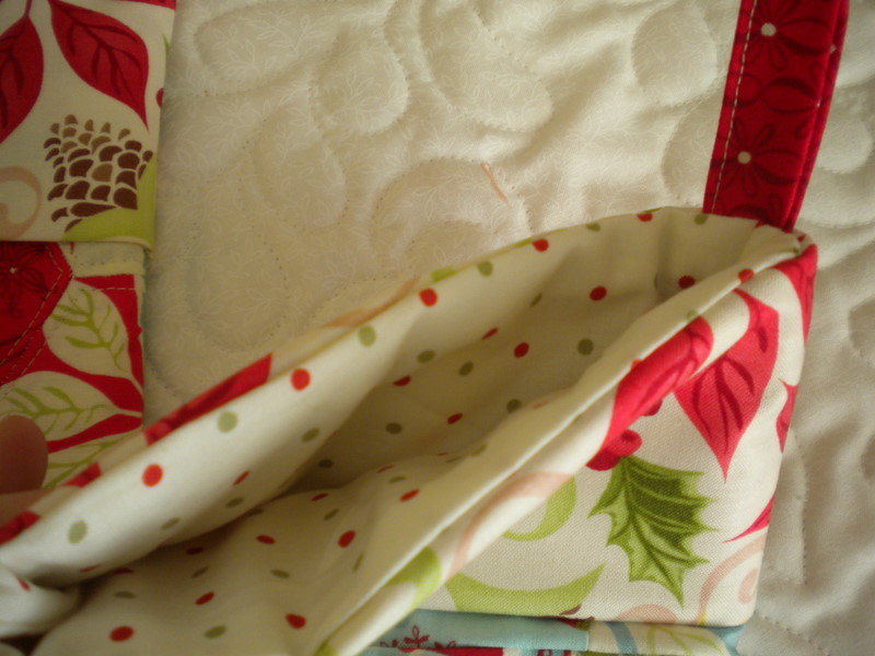 I found some other fabric in my stash that worked perfectly for lining…the red and green polka dot on white is from Winter by Minick and Simpson–I think it was a line that was out about 2 years ago…but the colors went perfectly with 12 Days! Oh, and I used this tutorial to finish this stocking with no seams showing anywhere!