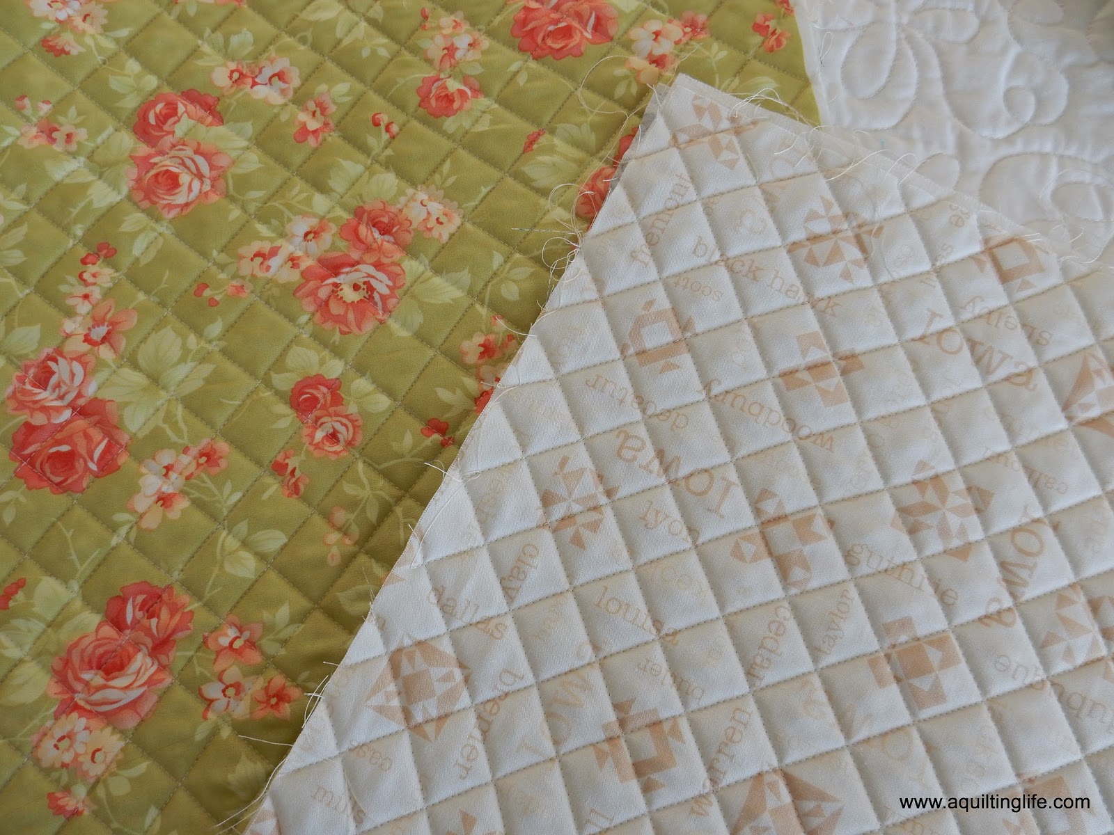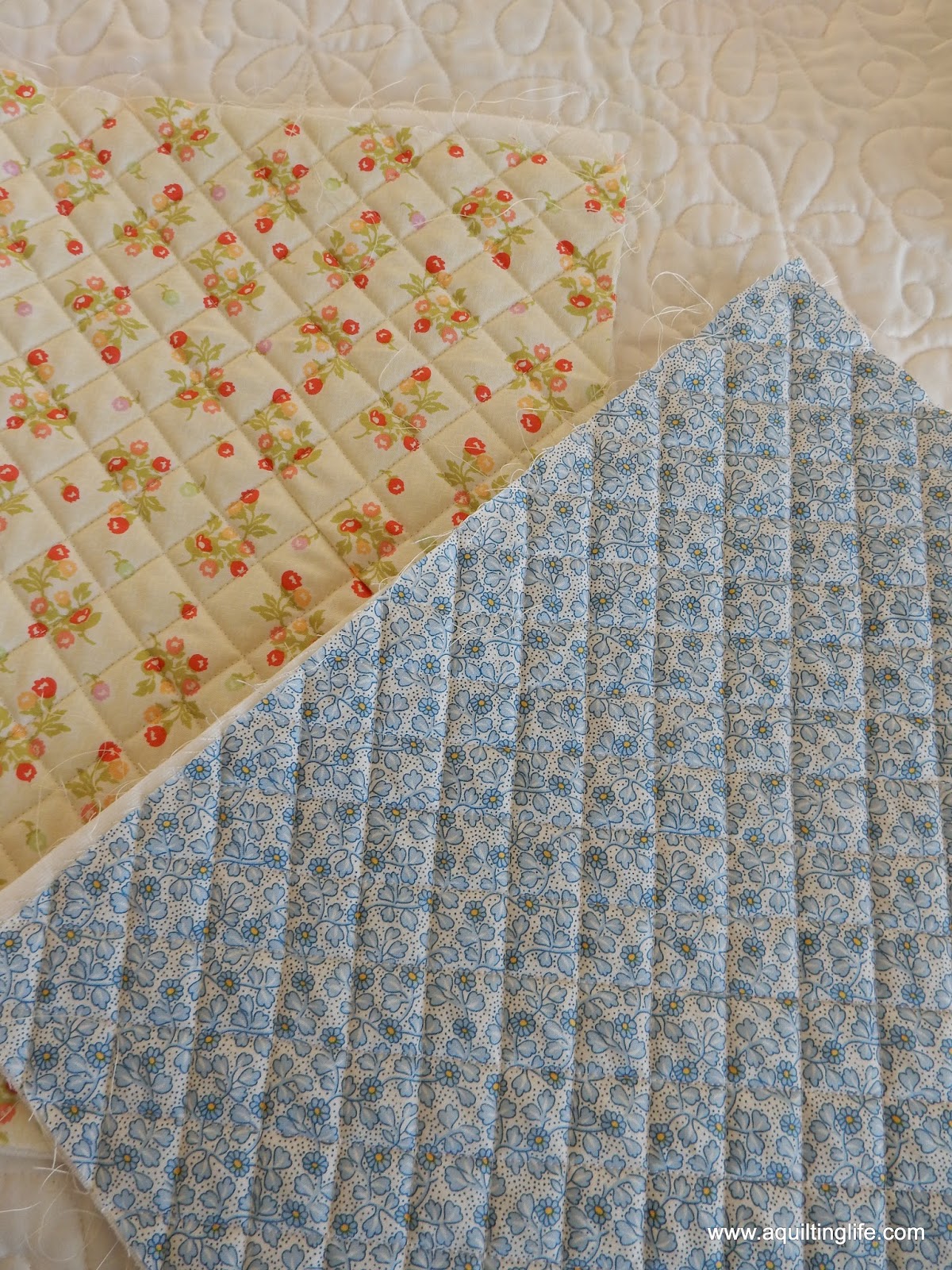 The back of the green Fig Tree print above has the light Fig Tree print below for backing. And the Iowa print above has the blue 30’s print on the other side.