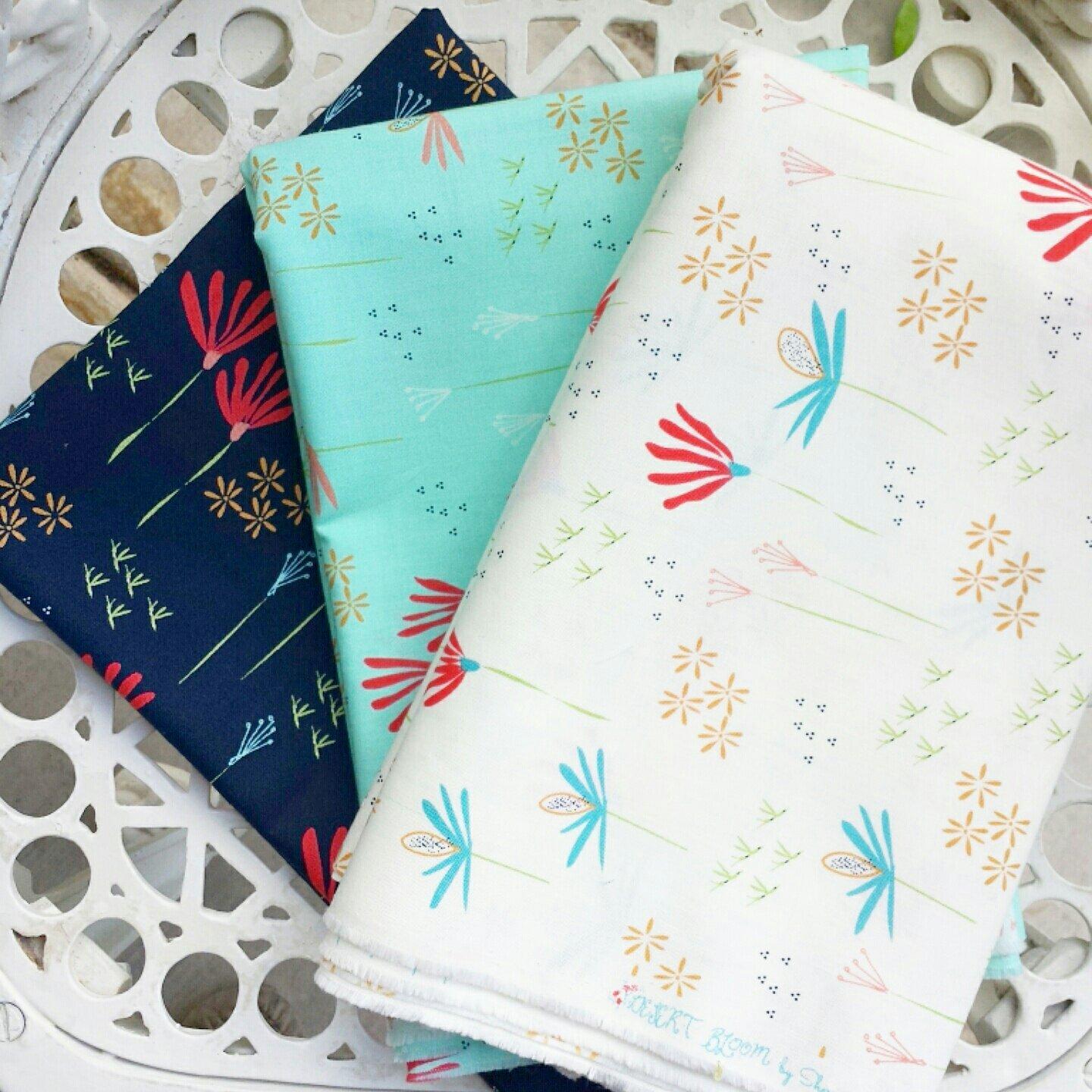 wildflower florals, dots, great backing and border prints, great binding fabrics, and wonderful stash builders and blenders. I think my favorite print has to be the Wildflower print. It comes in an ivory background, a navy background, and an aqua background. We have been using this print for everything from bags to quilt backs and borders…and I still have more plans for it!