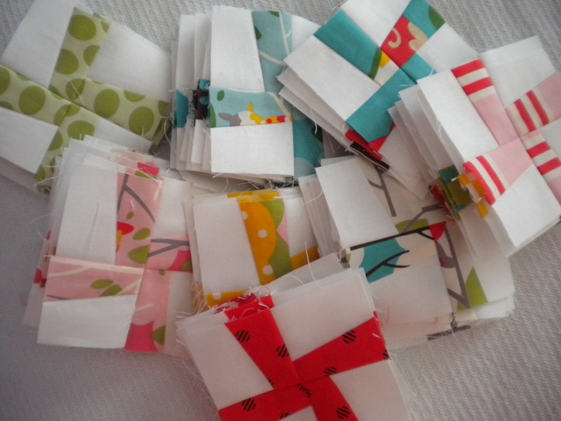 I love the range of colors in that collection! I can see using these cheerful fabrics for so many projects. I also love your mini cross blocks. Someday I wold love to try one of those mystery blocks of the month. That one looks like a santa hat – cute!