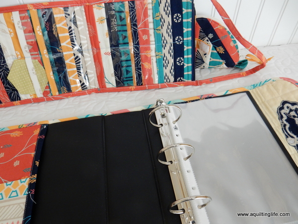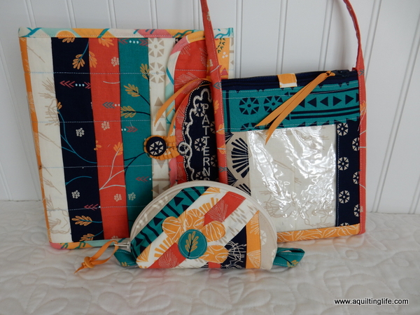 Mindy Home, a regular blog reader made this cute pouch, a pattern holder, and a zipper bag with lots of pockets inside for paper piecing.