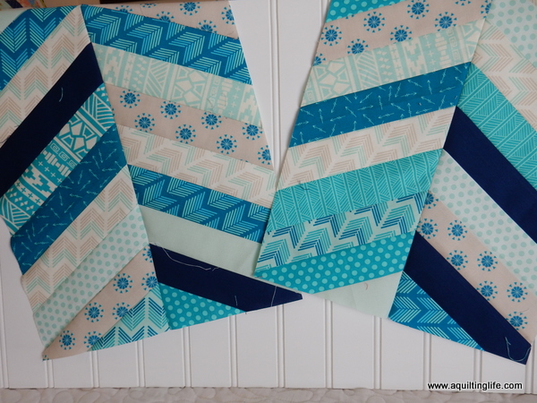 I’m kind of making things up as I go, but I will share all of the details about these quilts when they are back from the quilter. I’ve used all of the blue prints from our Bright Sun collection along with a couple of Moda Bella Solids (Nautical Blue 9900 236 and Breeze 9900 132).