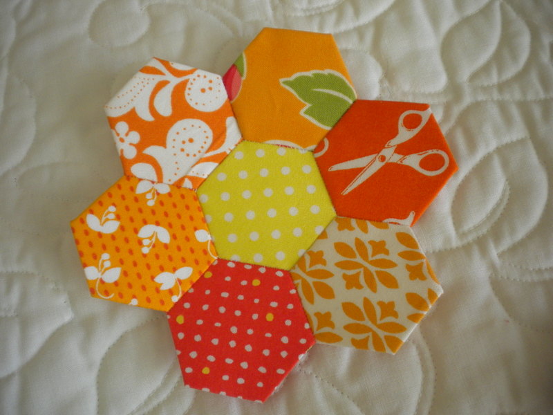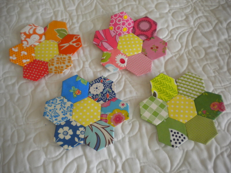 Love these hexies! They really work in these bright happy colours. They are like real flowers!