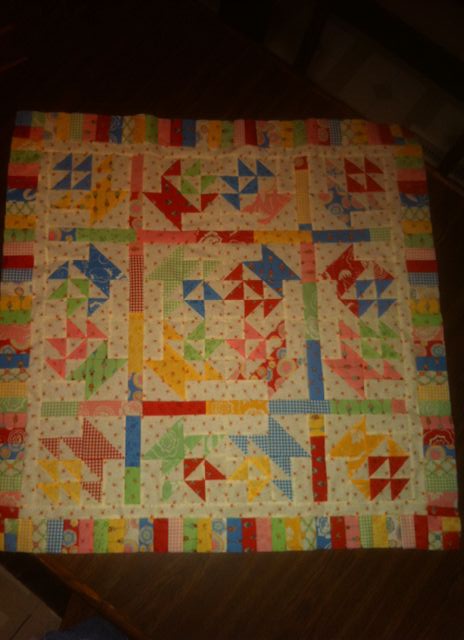 Happy October first! And happy Schnibbles parade day! To start off, I just had to share one of Carrie’s “Full House” quilts (photo from Carrie’s blog). I am seriously in love with this quilt. It’s made with her Nine Dots fabric; the quilting is absolutely stunning as well. This project is on my “have to do soon” list! Okay…on with the parade. This month was “free choice,” and there are some fun quilts here and over at Sinta’s blog.
