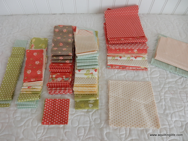 I hadn’t yet gone through my scrap bins of Farmhouse and Strawberry Fields Revisited since sewing several quilts with both collections for the Minneapolis and Houston quilt markets. So my task the other day was to go through those bins!