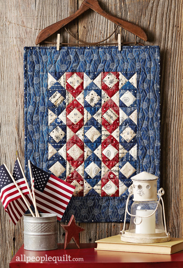 Something else really neat about this project is that the magazine also has available a mini version of my quilt! Editor Jody Sanders made the adorable patriotic version shown below!