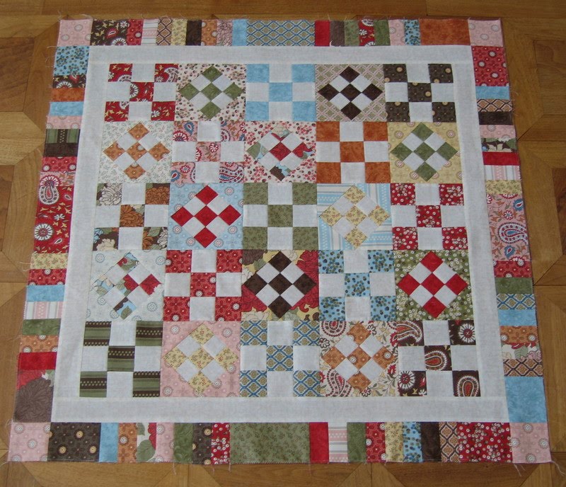 Not only is this my first Schnibble, but it is also the very first quilt top that I have ever finished. (So if you don't put its picture up, I'm okay with that.) ๐