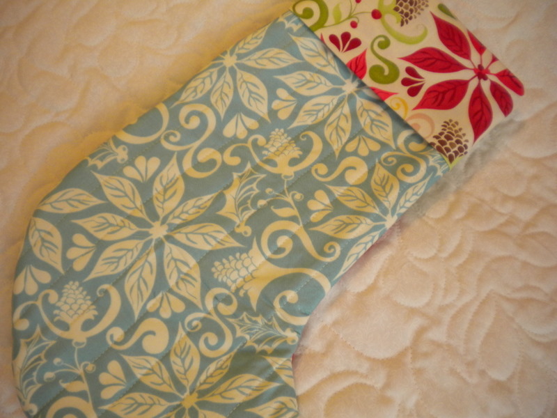 There are lots of clouds today, so it was kind of difficult to get good lighting for these pictures, but I had to have one picture of the stocking actually “hanging”–this one in front of the Christmas village turned out best. Okay…back to sewing. I have to decide whether to start the zig zag stocking or the pinwheel one next. Or I might make my next one using one of these designs! Have a great day!