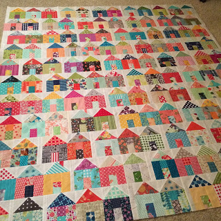 Love Brenda's quilting it's perfect for this mini and Karen's fabrics so much fun to look at! And I love Carrie's houses:-)