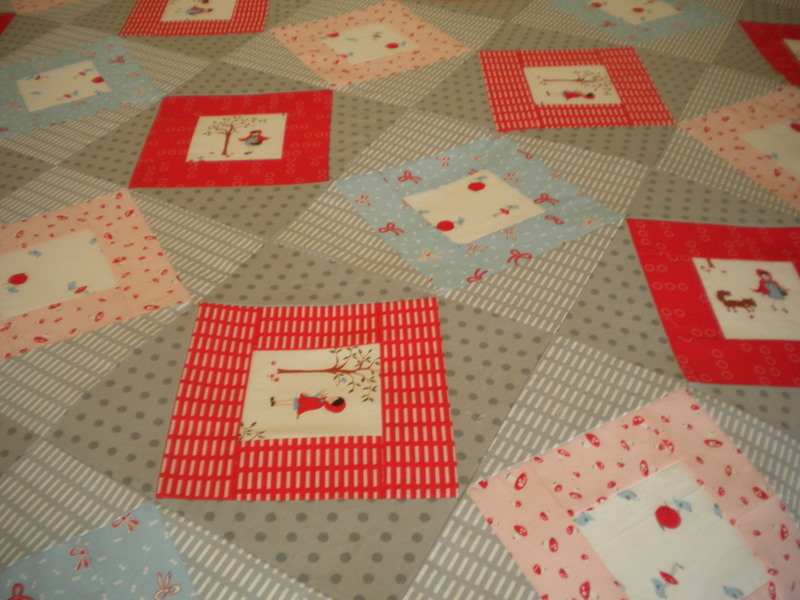 I just love that fabric and the quilt. I have Little Red Riding Hood quilt in redwork started and I am thinking that fabric would look perfect for borders.
