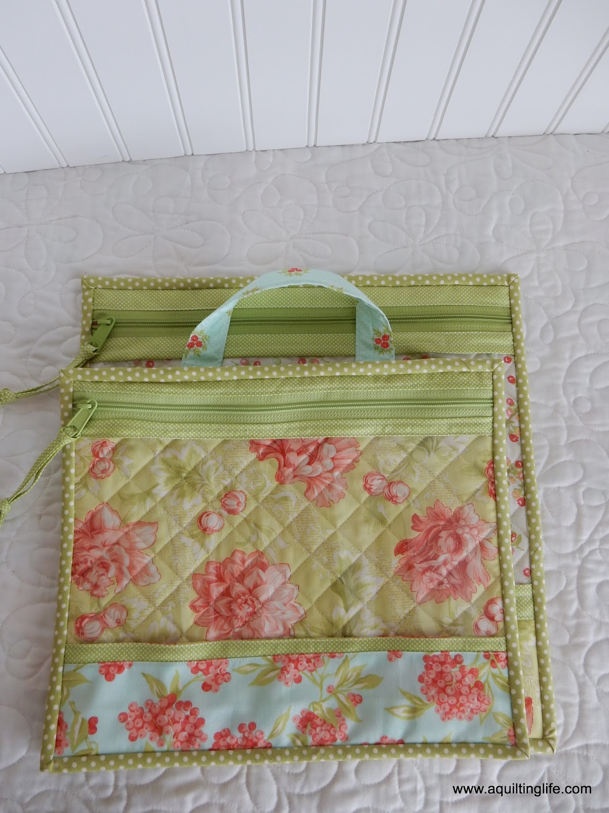 time I made a smaller size, opting for the medium size. And I put handles on both of them. Think how easy it would be to hang these in a closet with handwork or applique ready to go!