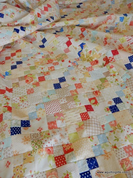 What a great quilt top and can't wait to see the borders on Sherri….that was a lot of 4-patches and putting the blue in the centers really works. Love it!