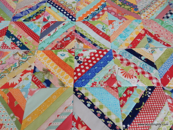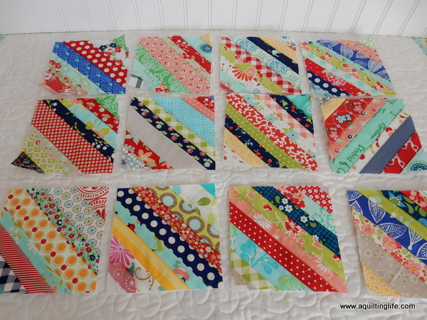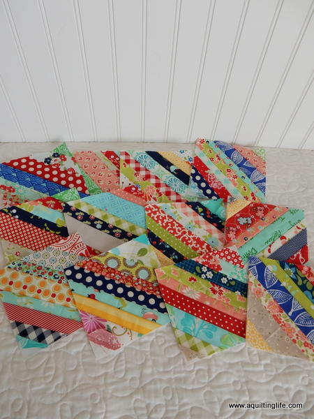 (You can read about my string block method in this post). The blocks I’m sharing today start out at 6 ½″ and then are trimmed to 6″ before being sewn together.