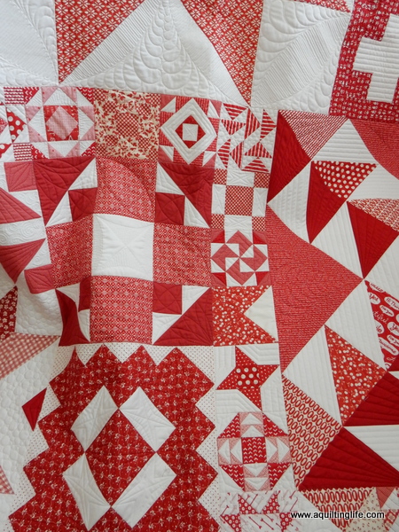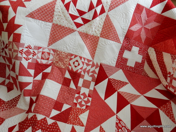 Just gorgeous! I love quilts that use a variety of blocks. So much fun to just sit and look at all the different patterns. The red and white is perfect. Just ordered the pattern so that I can have a try at this one. I don't have a big enough stash of just two colors to make this quilt, but I'm willing to go fabric shopping….it's tough but someone's got to do it, right?! ๐