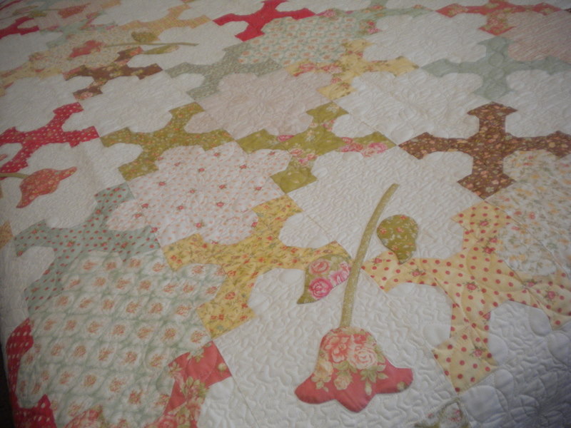 I did a little sewing during my free time…finally finishing up the binding on my Vanilla & Blooms quilt that just arrived back from the quilter a couple of weeks ago.