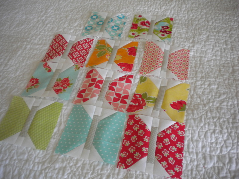 Well…I’ve found a project to keep my mind off the Farmer’s Wife quilting that I’ve been missing…Lori’s amazing row-along! This is just week 2, so it’s definitely not too late to join in! I’m using scraps from 3 Bonnie & Camille lines for my quilt…Ruby, Vintage Modern, and Marmalade.