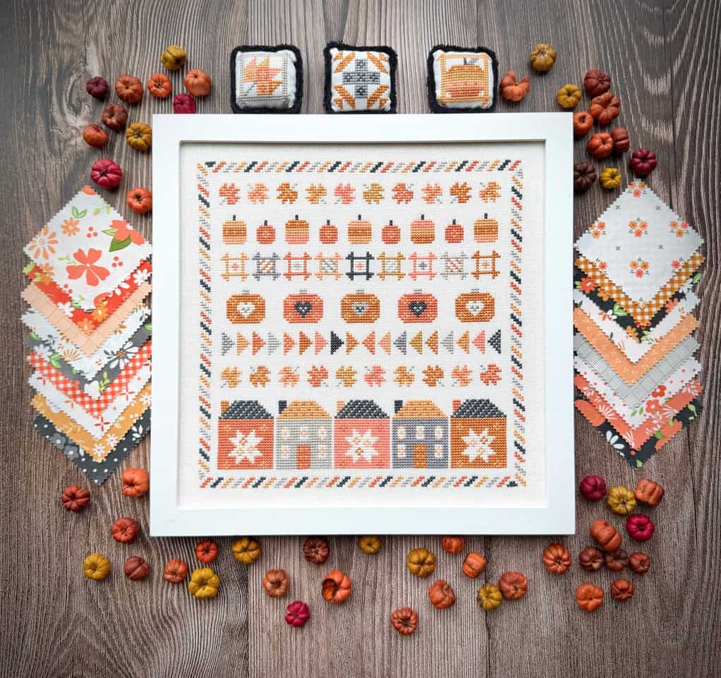 My friend Katie from Count Your Stitches Designs has just finished up her Pumpkin Hollow Cross Stitch to coordinate with my Pumpkin Hollow quilt pattern! There are also the mini designs pictured in the above right photo that are a bonus included with the pattern. It’s available in paper and PDF now.