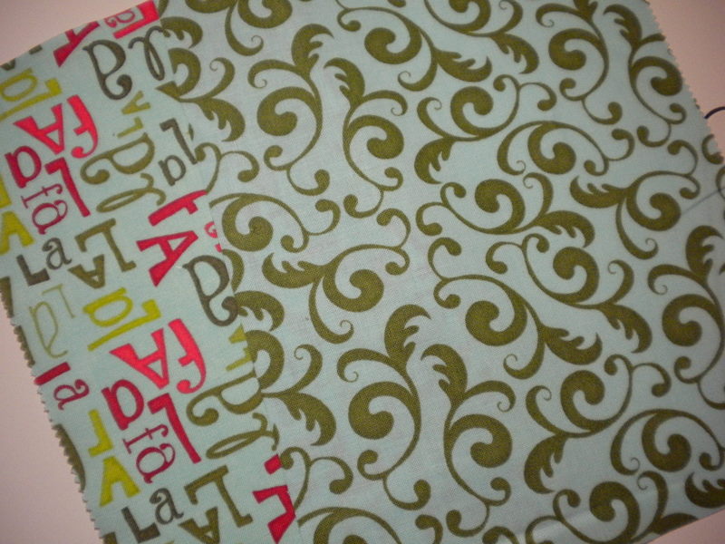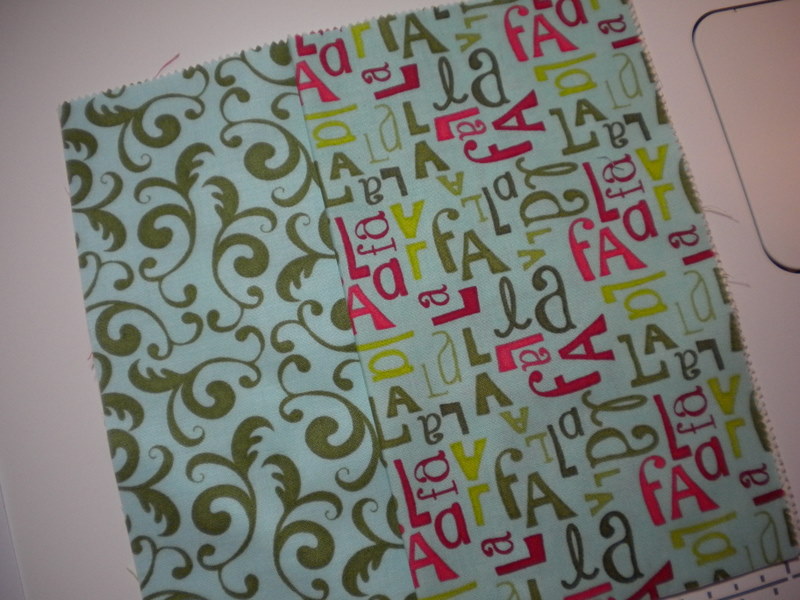 You will also need two other layer cake squares for the backing. Trim them one to 8″ by 9″ and trim the other to 7″ by 9.” I also used one strip of 2 ¼″ by width of fabric for the binding (not pictured).