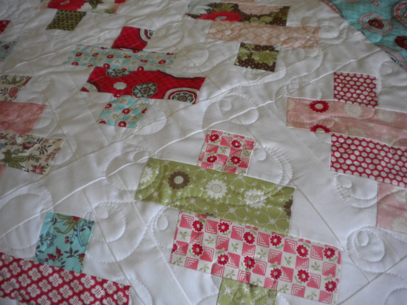 I am loving the quilt. Love that fabric.