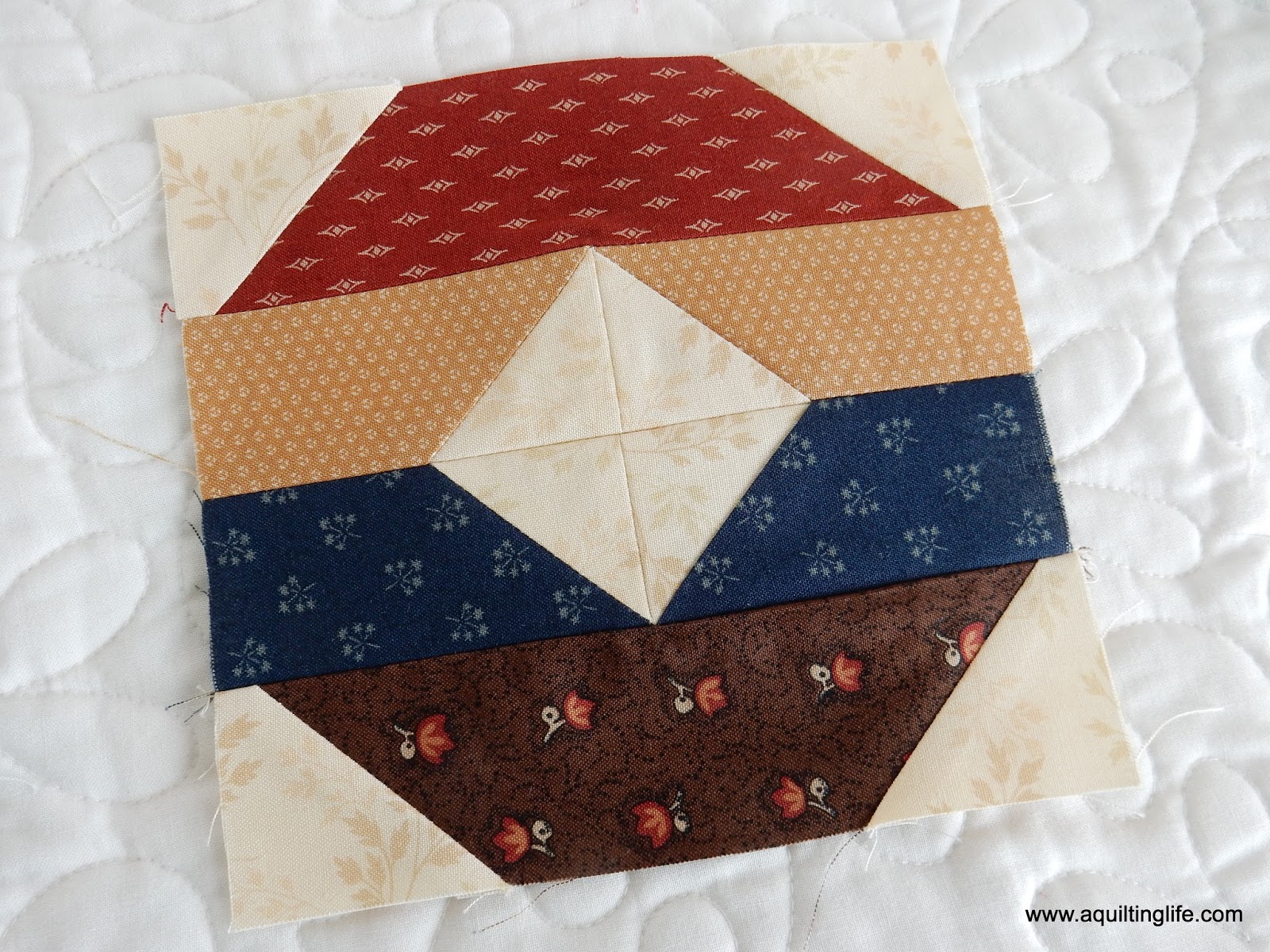 Although I’m quilting along using my Fig Tree scraps, my original block was made with some gorgeous reproduction prints…I think it looks great in both fabric combinations. The block below was the one I sent to Pat to be used in one of the quilts being made with all of the blocks.