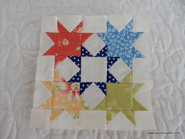 Next I made Kimberly Jolly’s block with the large stars representing each of her four children with the center star representing her…I just loved making this block as well…and it went together beautifully!
