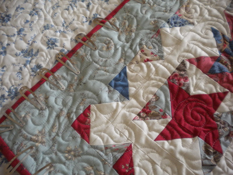 Oh…and I’ll have some more binding to do soon…Judi has just finished quilting my first Bliss quilt (pattern “Paper Roses” by Fig Tree & Company)! To see her beautiful work on this quilt go here!