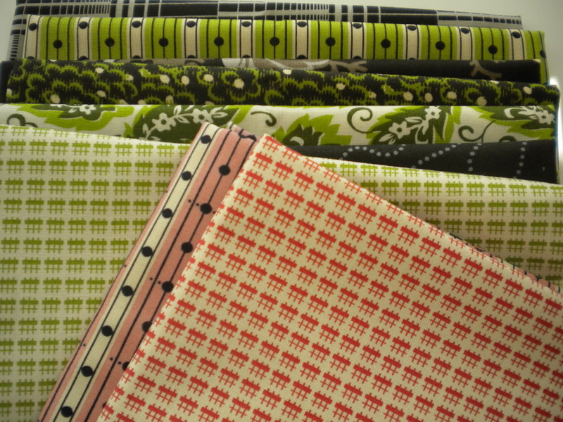I found some green fat quarters and a couple of the pink prints from Denyse Schmidt’s Greenfield Hill…(I want to make this quilt eventually).