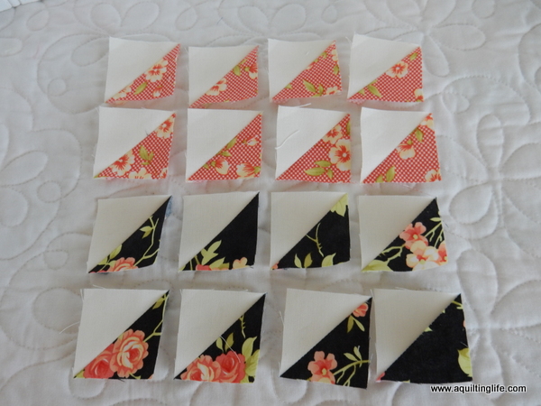 Make four star point sections for each block. At this point these sections should measure 3″ x 3″.