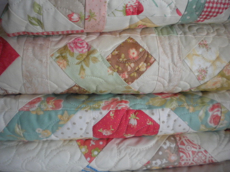 I love stacks of quilts. They make me happy. The binding is lovely. I always like bias look binding.