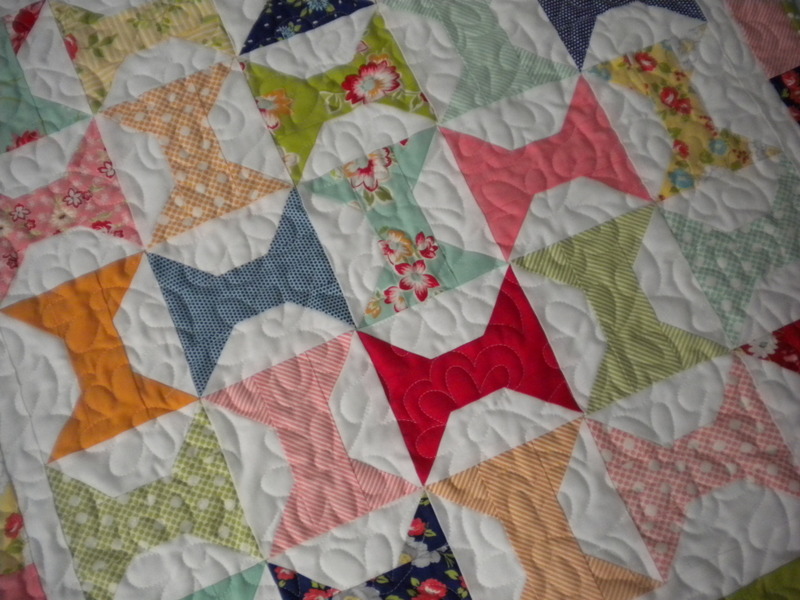 What a great change in color for a baby quilt and love the pattern and color. Nice job! Your Gentle Art came out really nice and looks so crisp and cute hanging there. Fun pattern and will do again in lighter backgrounds after seeing yours! Thanks…