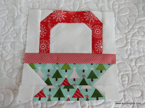 The block instructions were simple to follow, and my block went together quickly. It finishes at 8″, so I’m going to border it for a pillow…although wouldn’t a whole quilt full of these baskets be fun…all in different Christmas prints?